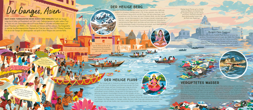 2025. 76 Seiten, durchgehend farbige Abbildungen mit Ausklappseiten von sechs großen Flüssen auf der ganzen Welt, großes Format: 23,5 x 30 cm, Hardcover