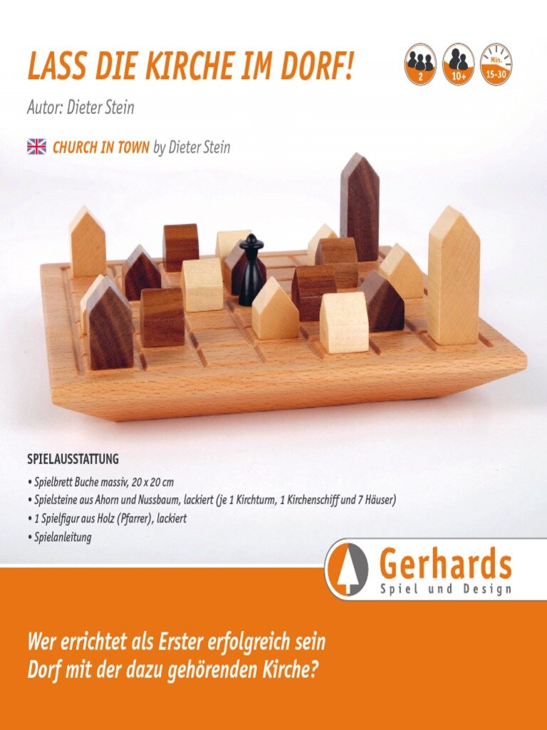Strategiespiel für 2 Spieler ab 10 Jahre. 18 Spielsteine und ein Pfarrer.